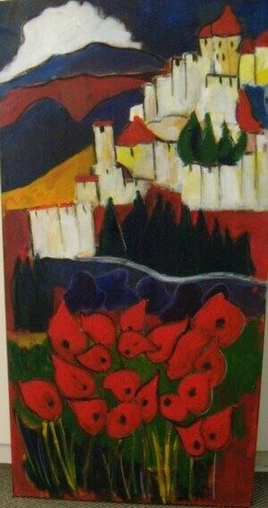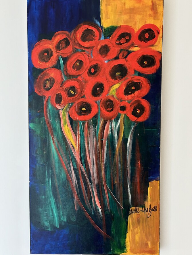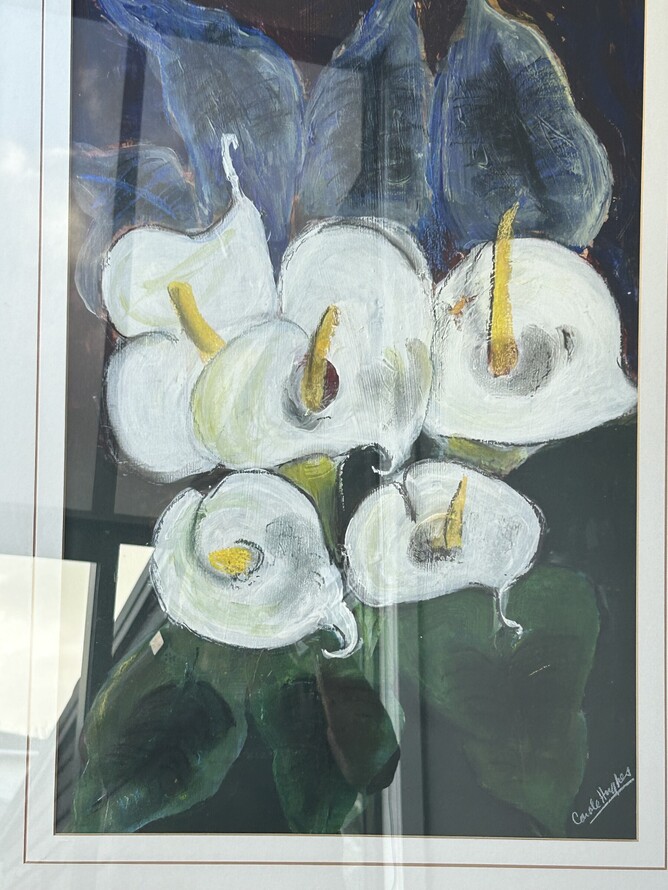 I have put some old paintings that I have done of flowers up on this blog post so that you can get an idea (but remember, these are old!). Apologies for the reflections, and the sunflowers have been much loved and are faded (I painted this in 1994).