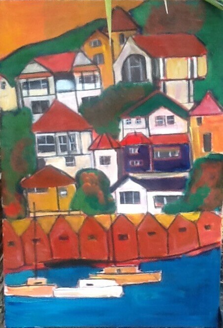 Driving around the harbour - on a sunny day, or a gusty day with whitecaps on the waves provides the vista of the homes of Oriental Bay and the boatsheds. Again, this is another favourite topic that I have painted in the past, the colours and reminders of many family histories gives the paintings a great deal of soul.