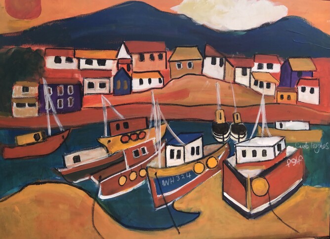 I have a new painting to show you, my favorite theme at the moment, Megavissey in Cornwall.