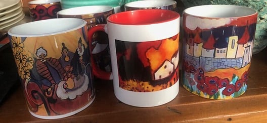Unique mugs with Carole Hughes Art paintings on them.