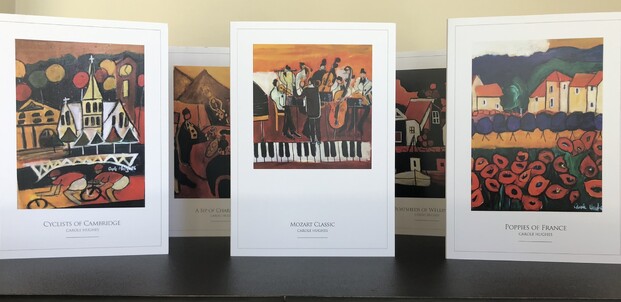 Six different gift cards with envelopes $25.00 plus postage of $4.00 (delivered by courier) or pick up at no cost in Cambridge